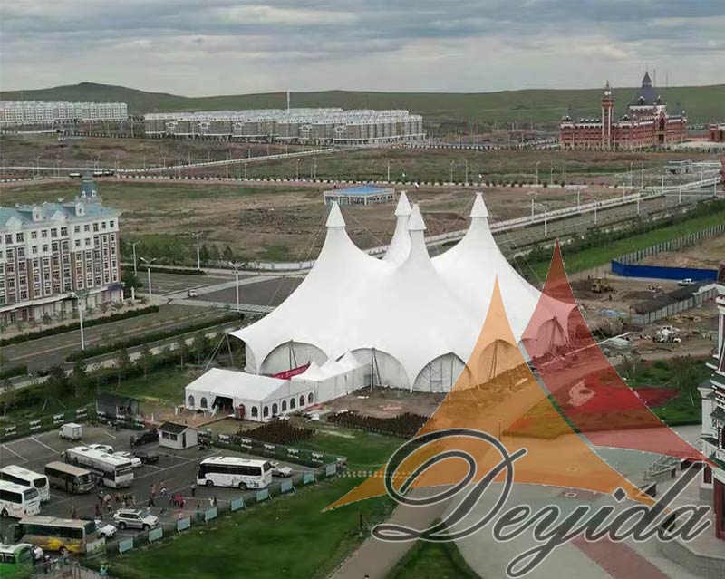 是由多種高強薄膜材料及加強構件(鋼架、鋼柱或鋼索)通過一定方式使其內部產生一定的預張應力以形成某種空間形狀,作為覆蓋結構,并能承受一定的外荷載作用的一種空間結構形式。吉